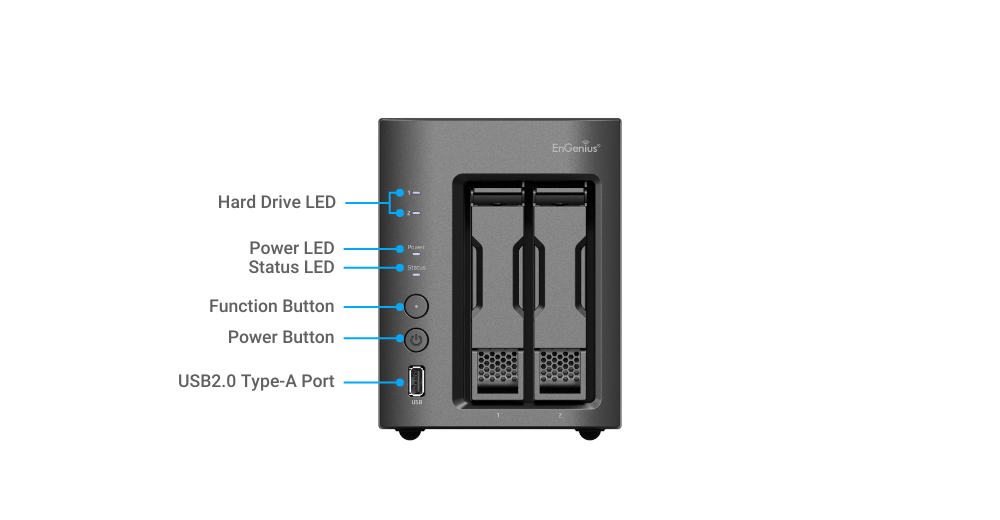 * 2 Bays drives for 3.5" or 2.5" HDD