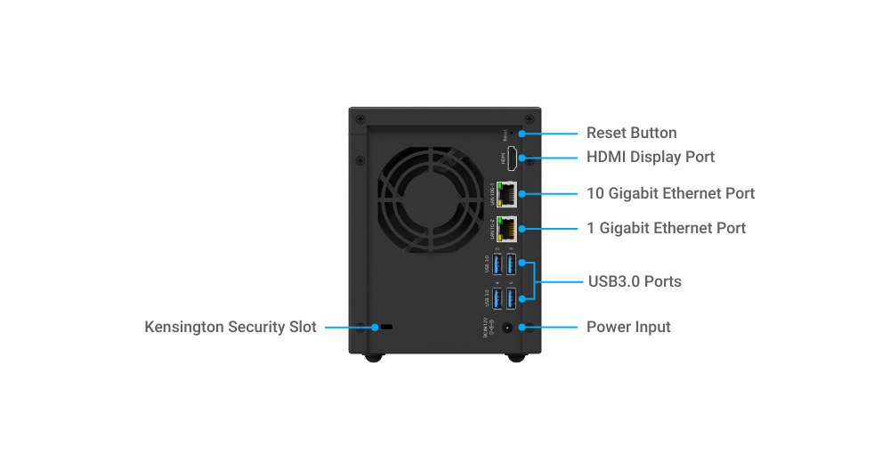<table><thead><tr><th width="250">Hardware</th><th></th></tr></thead><tbody><tr><td>Processor</td><td>Intel Elkhart Lake x6211E</td></tr><tr><td>Memory</td><td>8GB</td></tr><tr><td>Flash</td><td>16GB</td></tr><tr><td>Security</td><td>TPM v2.0</td></tr><tr><td>Drive Interface</td><td>SATA 3.0 x 2</td></tr><tr><td>Networking Interface</td><td>10GbE RJ45 x 1, 1GbE RJ-45 x 1</td></tr><tr><td>Display</td><td>HDMI 1.4b x 1</td></tr><tr><td>USB Port</td><td>3.0 Type A x 4, 2.0 Type A x 1</td></tr><tr><td>FAN Speed Control</td><td>Yes</td></tr><tr><td>Thermal Sensor</td><td>System x 1, CPU x 1</td></tr><tr><td>Buzzer</td><td>Yes</td></tr><tr><td>Button</td><td>Power, Function</td></tr><tr><td>LED Indicator</td><td>Power x 1, Function x 1, HDD x 2</td></tr><tr><td>Power Supply</td><td>DC12V@5A</td></tr><tr><td>Max. Power Consumption</td><td>92W</td></tr><tr><td>Ambient Operating Temperature</td><td>0~50°C (32~122°F)</td></tr><tr><td>Ambient Operating Humidity</td><td>10~85% RH</td></tr></tbody></table>