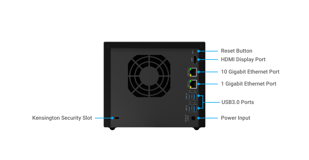 <table><thead><tr><th width="250">Hardware</th><th></th></tr></thead><tbody><tr><td>Processor</td><td>Intel Elkhart Lake x6211E</td></tr><tr><td>Memory</td><td>8GB</td></tr><tr><td>Flash</td><td>16GB</td></tr><tr><td>Security</td><td>TPM v2.0</td></tr><tr><td>Drive Interface</td><td>SATA 3.0 x 4</td></tr><tr><td>Networking Interface</td><td>10GbE RJ45 x 1, 1GbE RJ-45 x 1</td></tr><tr><td>Display</td><td>HDMI 1.4b x 1</td></tr><tr><td>USB Port</td><td>3.0 Type A x 4, 2.0 Type A x 1</td></tr><tr><td>FAN Speed Control</td><td>Yes</td></tr><tr><td>Thermal Sensor</td><td>System x 1, CPU x 1</td></tr><tr><td>Buzzer</td><td>Yes</td></tr><tr><td>Button</td><td>Power, Function</td></tr><tr><td>LED Indicator</td><td>Power x 1, Function x 1, HDD x 4</td></tr><tr><td>Power Supply</td><td>DC12V@7.5A</td></tr><tr><td>Max. Power Consumption</td><td>140W</td></tr><tr><td>Ambient Operating Temperature</td><td>0~50°C (32~122°F)</td></tr><tr><td>Ambient Operating Humidity</td><td>10~85% RH</td></tr></tbody></table>