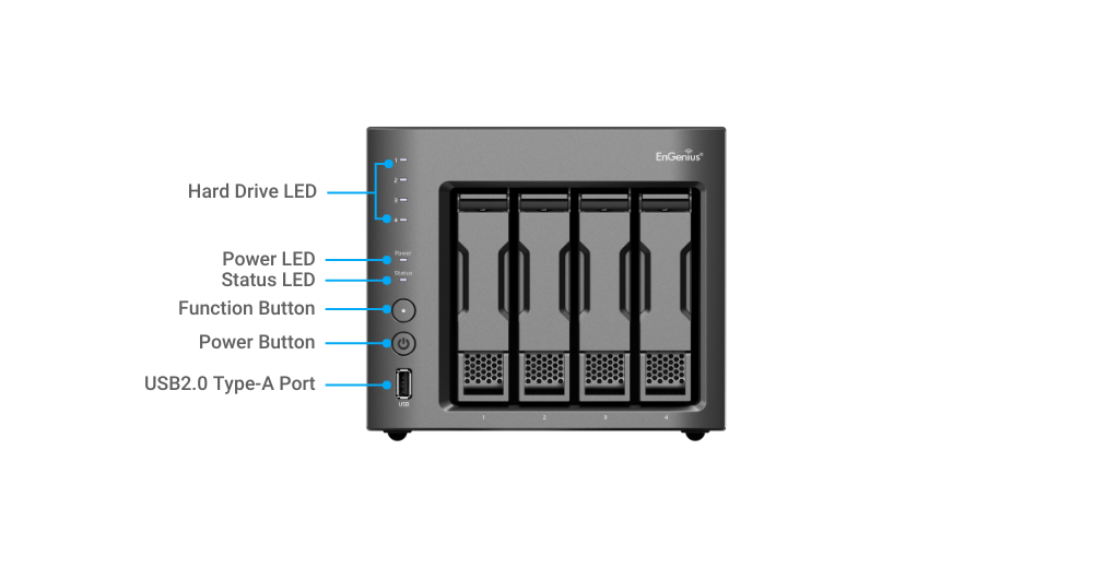 * 4 Bays drives for 3.5" or 2.5" HDD