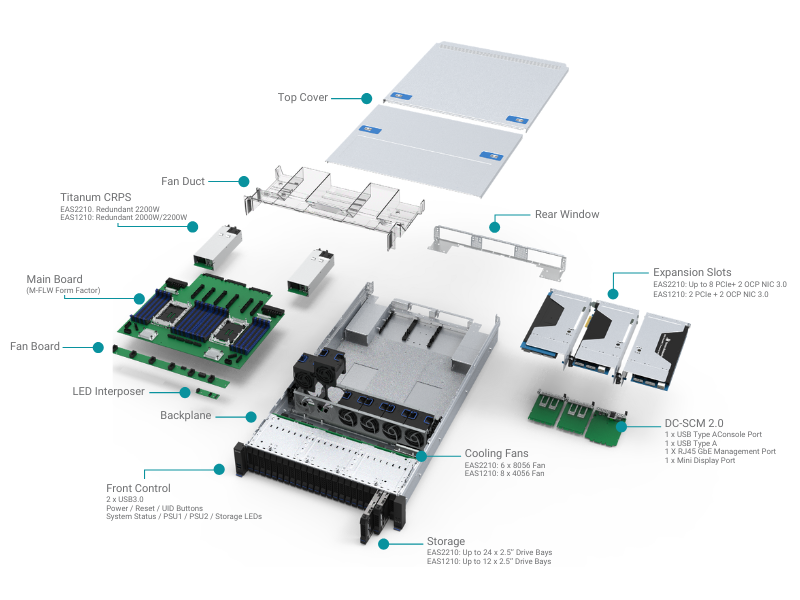 4 × Status LEDs (Fault, LAN, M.2, UID)