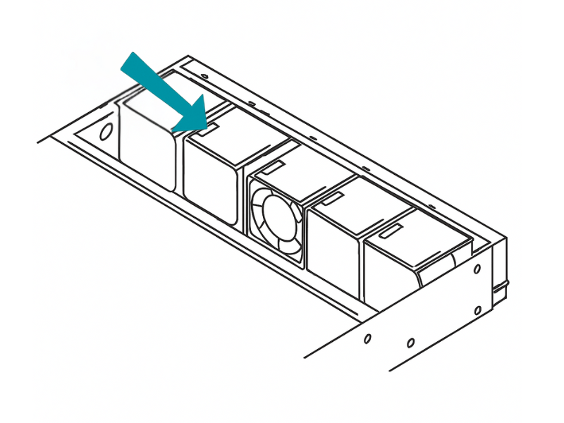 Install the new fan module. Align the new fan module with the empty slot and press it down firmly until it clicks into place.